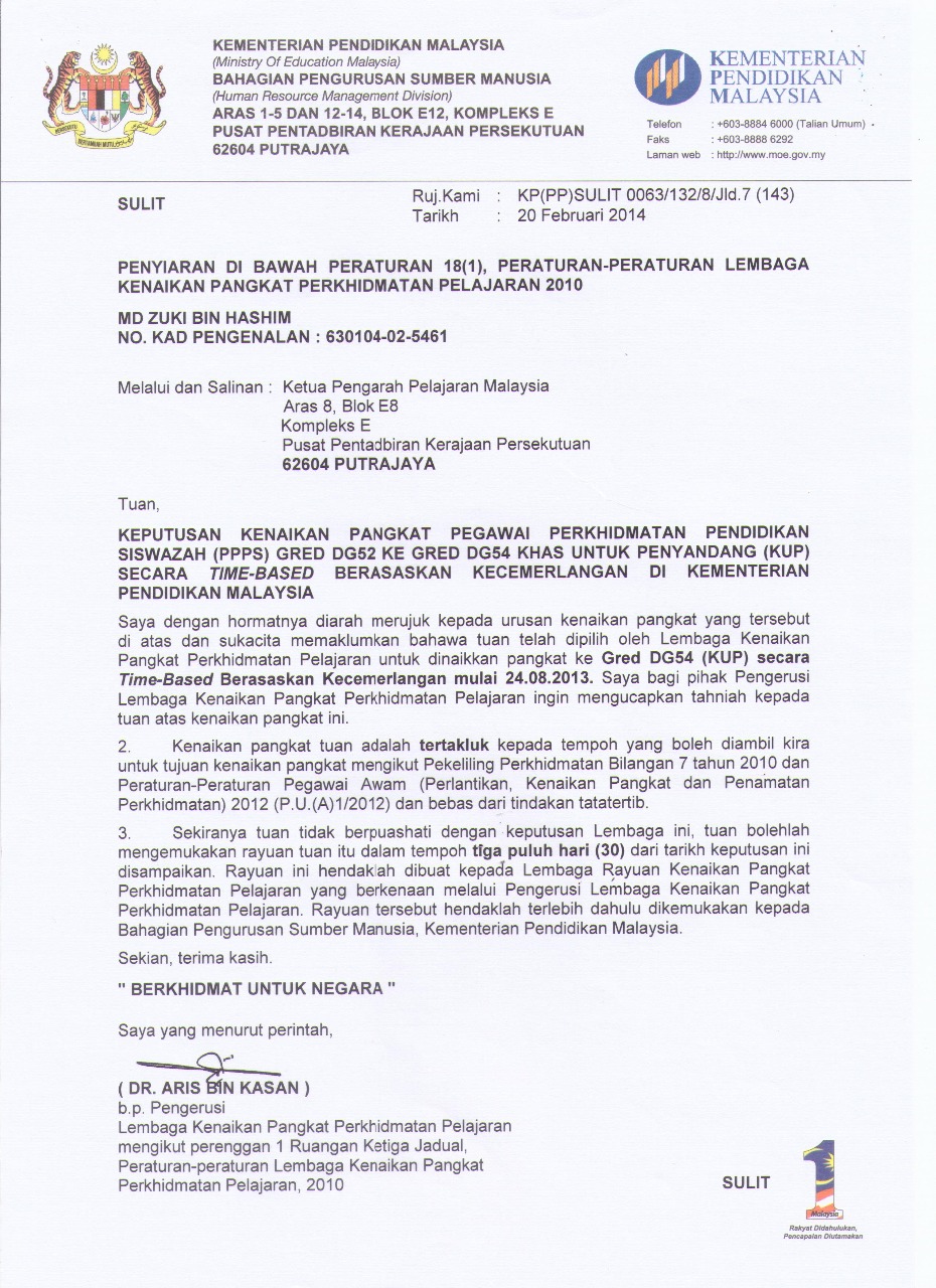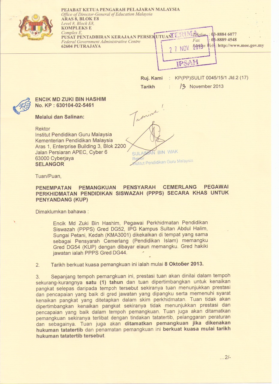 - Namun kedua-dua surat tersebut tidak menjejaskan sesiapa dalam persaingan perjawatan di IPG dan tidak melibatkan pertukaran tempat bertugas atas sifatnya sebagai Khas Untuk Penyandang. Gred hakiki saya ialah 44.